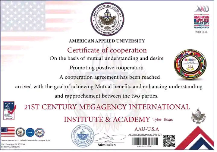 The American Applied University is an independent, leading institution in higher education, accredited by the Government of the United States in the State of Colorado (Registered under No. 20231157881). The university's vision is to provide globally recognized applied and professional educational opportunities, enabling students to achieve their academic aspirations without financial, geographical, or personal constraints.